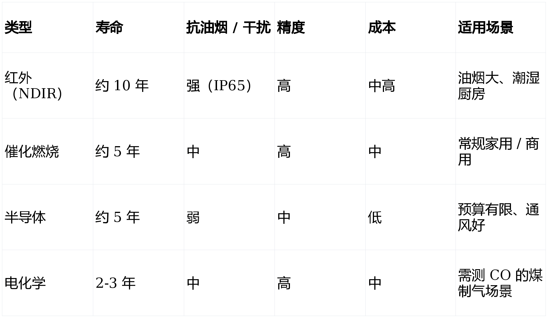 壽命更換:紅外約 10 年,催化 / 半導(dǎo)體約 5 年,電化學(xué) 2-3 年,到期強(qiáng)制更換。
